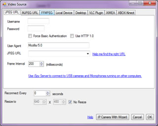 Use an MJPEG or JPEG source to connect to webcams and most IP cameras. The URLs for IP cameras vary a lot. We've added a wizard to the iSpyConnect website which guides you through finding the right URL for your camera.