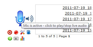 Click on the microphone icon (for a microphone source) to play live audio through the web browser. There may be a short delay between clicking the icon and hearing the audio (whilst it buffers).