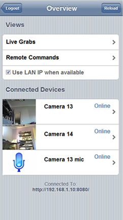 - http://IPADDRESS:8080/livefeed?oid=CAM_ID&thumb : thumbnail snapshot