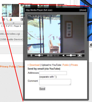 Live video is available through iSpyConnect in a variety of resolutions. The "Live Viewer" on the right displays a live feed from your camera at 320 x 240px. You can select a different resolution for the live feed from the drop-down underneath - any size up to the native size of your camera. When you choose a different resolution the video feed pops up in a bigger (or smaller) window.